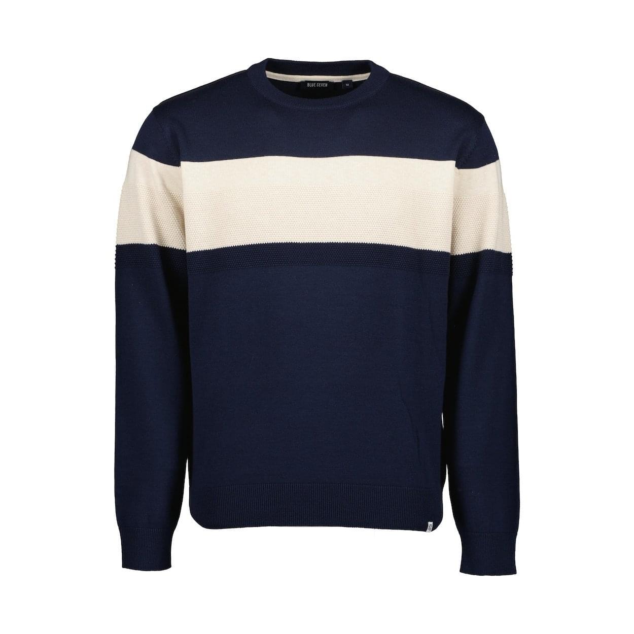 Productkenmerken: Gebreide trui Ronde hals Gestreept patroon 50% acryl, 50% katoen De Stripe trui van Blue Seven heeft een ronde hals.