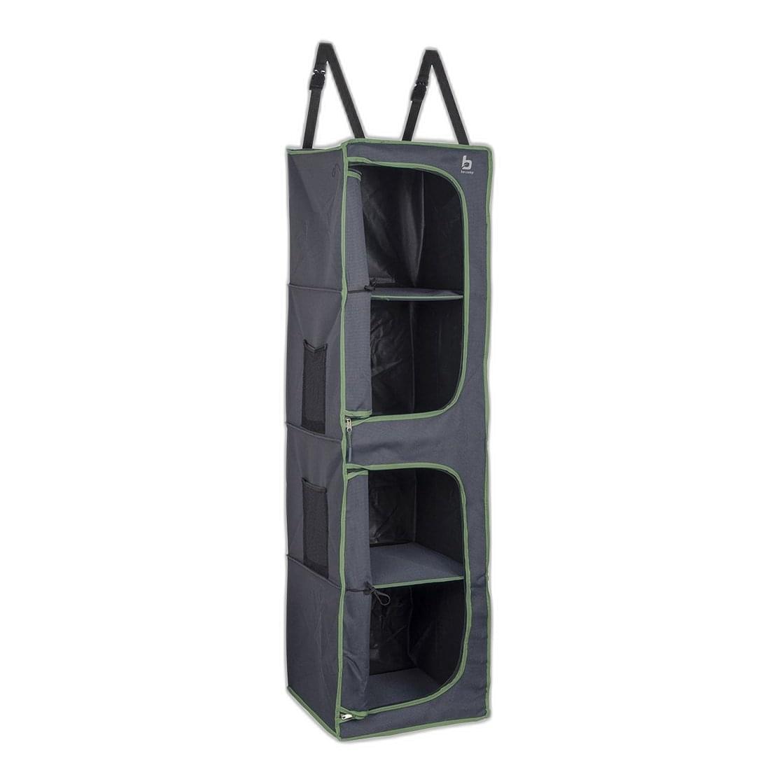 Deze organizer van Bo-Camp heeft 4 schappen die allemaal afgesloten kunnen worden met een rits. Hij is gemaakt van polyester en kan op diverse manieren worden opgehangen.