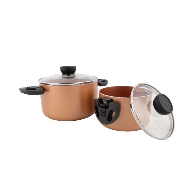 Door de inklapbare oren kun je de pannenset gemakkelijk nestbaar meenemen, welke natuurlijk hittebestendig zijn.