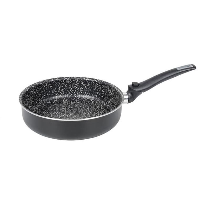 De Turn hapjespan van Bo-Camp heeft een handvat wat weggedraaid kan worden. Hierdoor kan de pan compact opgeborgen worden zonder dat je een los handvat hebt wat zoek kan raken. De pan is gemaakt van aluminium en is voorzien van een stevige 5-laagse Salus stenen anti-aanbak coating. De hapjespan is geschikt voor het koken op gas of elektrisch en kan ook voor keramisch koken gebruikt worden.