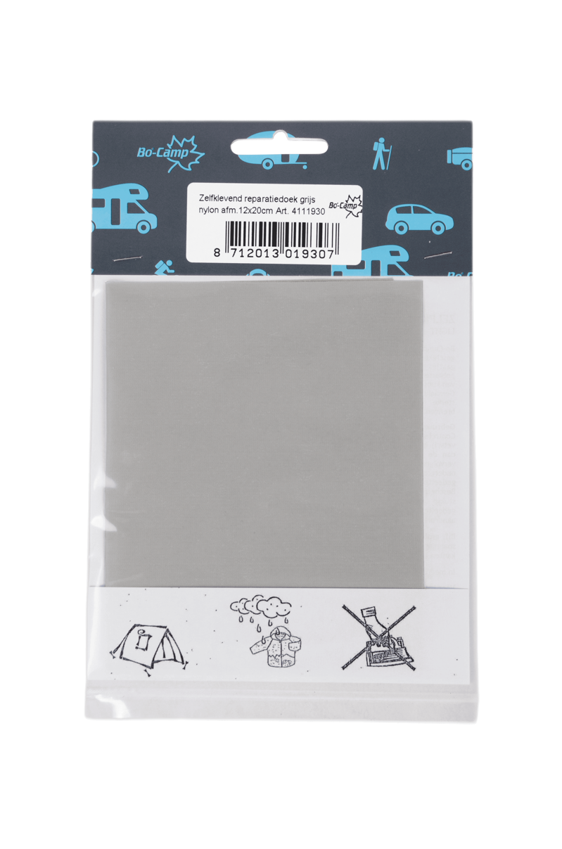Repareer je nylon-tent met dit zelfklevende reparatiedoek van Bo-Camp. Dit doek is geschikt voor surfzeilen en nylon tenten en is gemaakt van sterk en duurzaam nylon. Het woord zelfklevend zegt het eigenlijk al: je plakt het simpelweg op het te repareren doek (op de plek waar de schade zit) en klaar ben je.