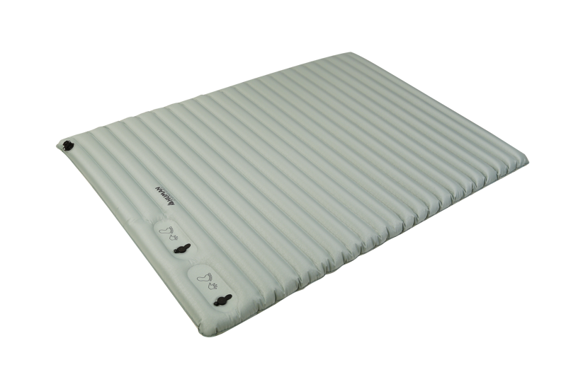 Het compacte 2-persoons luchtbed van Human Comfort is gemaakt van extra sterk polyester. Doordat het doek een speciale behandeling, met een embossy structuur, heeft ondergaan kraakt het minder dan de gebruikelijke luchtbedden. De ingebouwde foam pomp zorgt dat je altijd een pomp bij de hand hebt. Met 23 horizontale banen die zorgen voor een stabiele ligging.