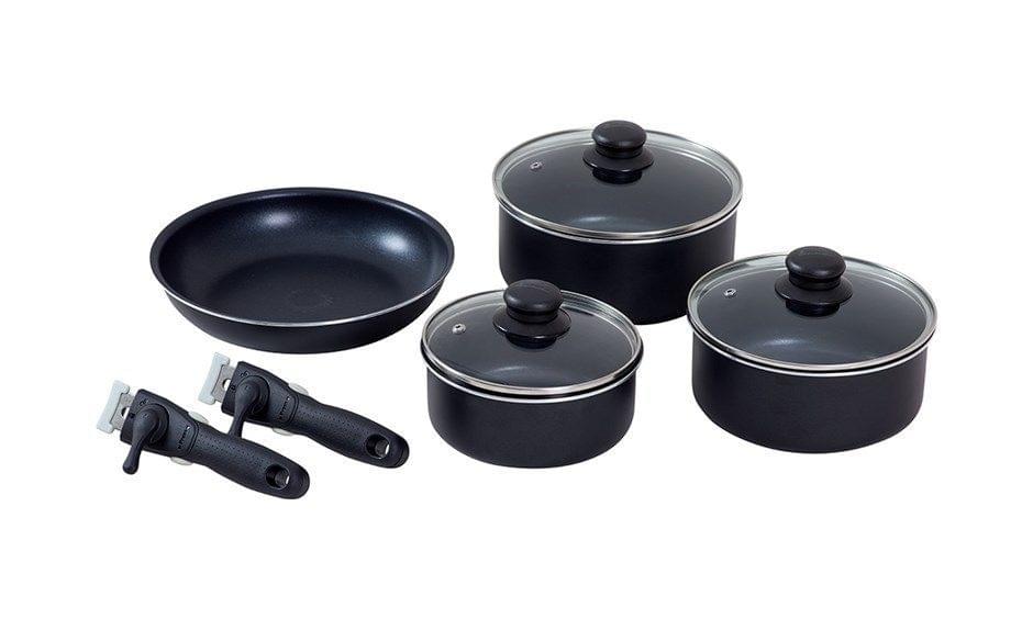 Een complete pannenset van Isabella. De pannen zijn geschikt voor alle warmtebronnen en opstapelbaar. Ideaal voor op de camping omdat je al zoveel wilt meenemen. De kookpannen zijn af te sluiten met een glazen deksel met koudgreep. Je pakt de pannen van het vuur met de afneembare pannengreep die je eenvoudig vastklikt en vastzet.