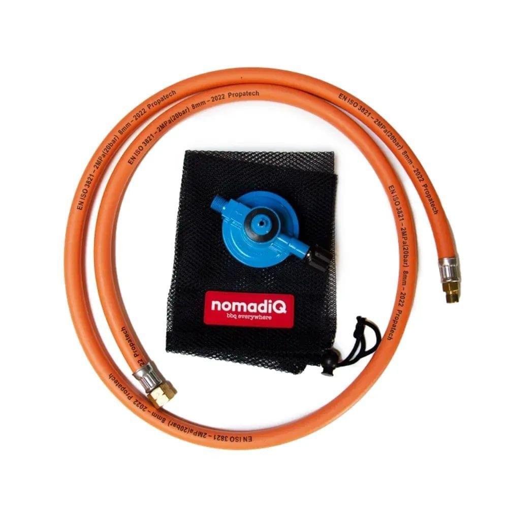 Heb je een Nomadique BBQ en wil je deze ook op een Campingaz gasfles kunnen aansluiten? Gebruik dan deze gas verlengslang met drukregelaar.