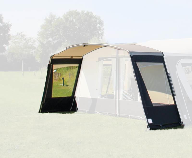 Een luxe uitbreiding van 120 diepte, d.m.v. een sterke 10 mm rits aan de Lazise te verbinden. De voorwand van de boogvoortent kan in de Lazise room worden geritst waardoor je een totaaldiepte van 390 cm hebt!