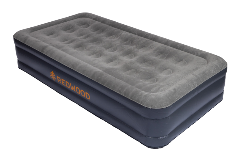 Het Redwood 1-Persoons Luchtbed met pomp blaast zichzelf op met één druk op de knop. Werkt op netstroom via een snoer.