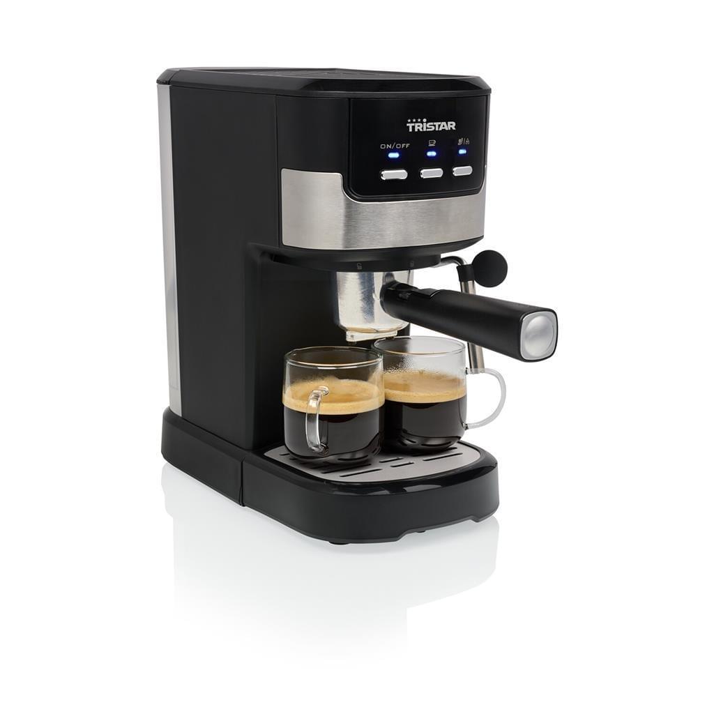 Met de Tristar espressomachine zet je moeiteloos als een echte barista de lekkerste verse espresso. In deze veelzijdige machine zit een krachtige 20 bar pomp waar je een heerlijke aromatische kop koffie mee zet met een zachte crema laag. De waterdruk wordt gelijkmatig verdeeld waardoor de smaak en kwaliteit voor 2 kopjes tegelijk hetzelfde is. Met de handige meegeleverde nozzle kan je